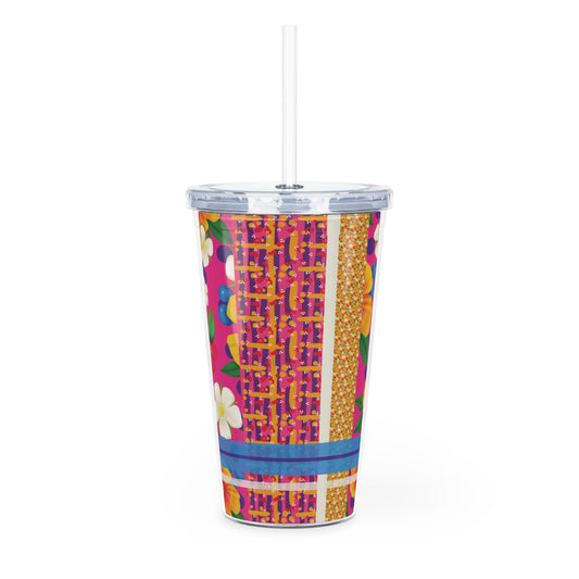 Watercolor Spring Floral Hand-Lettered Plastic Tumbler with Straw