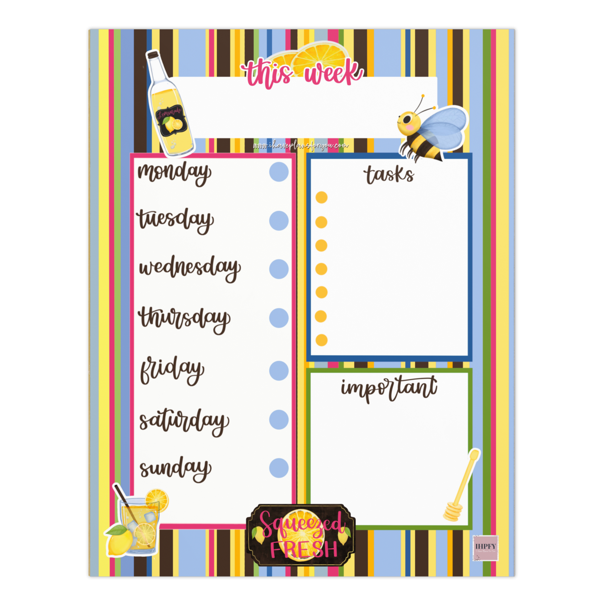 Bee Sweet with a Weekly Reset notepad with beautiful lemon, bee, and honey illustrations from the Bee Sweet collection here at I Have Plans For You. You can rip off the past week and start fresh with a pre-designed spread that you keep on your nightstand or desk.